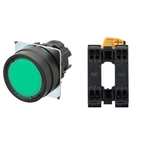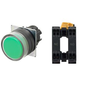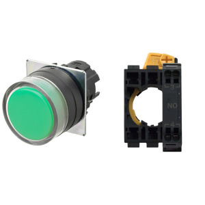 Leuchtdrucktaster 16mm grün 1S Druckknopf flach
