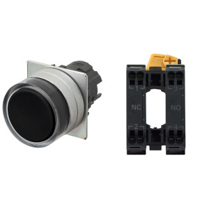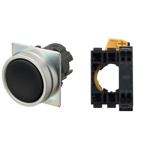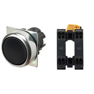 Pushbutton A22NL Ø22, bezel brushed metal, FLAT, MOMENTARY, CAP COLOR