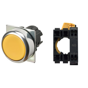 Leuchtdrucktaster 16mm gelb 1S Druckknopf flach
