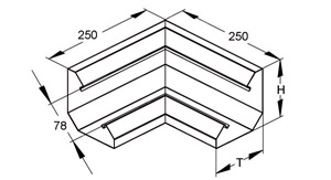 GK-Inneneck 90°, verstellbar +/- 5° , einzügig symmetrisch 213x60 mm, S