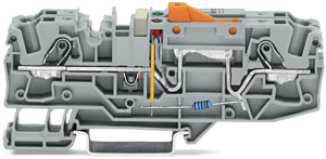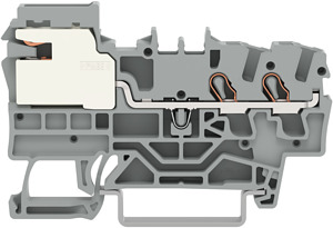 2L-Trenn- und Messklemme mit Drücker mit Prüfmöglichkeit grau